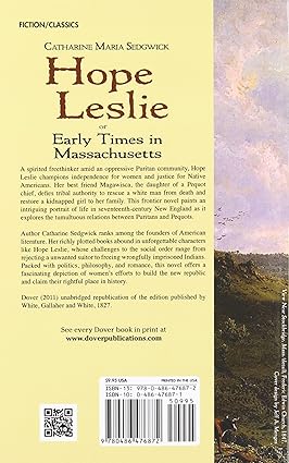 Author Catharine Sedgwick ranks among the founders of American literature. Her richly plotted books abound in unforgettable characters like Hope Leslie, whose challenges to the social order range from rejecting a unwanted suitor to freeing wrongfully imprisoned Indians. Packed with politics, philosophy, and romance, this novel offers a fascinating depiction of women's efforts to build the new republic and claim their rightful place in history.