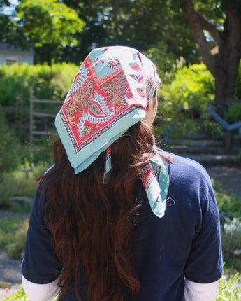 Upgrade your outfit with this scarf based on pieces in the Old Sturbridge Village collection. Tie this scarf around your neck or your head to hold your hair back. Can also be folded in half and worn around your shoulders. Printed in India