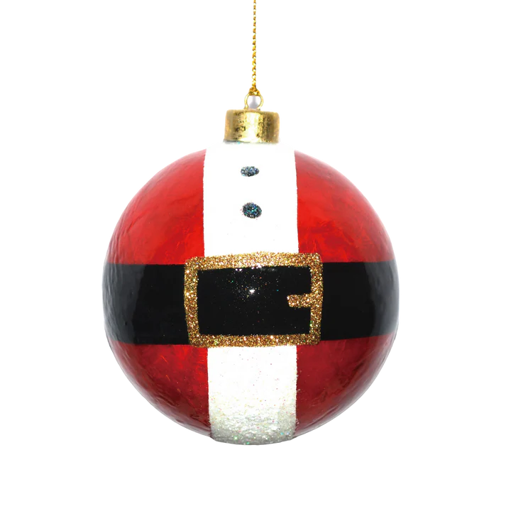 Celebrate the holiday spirit this festive ornament that adds a warm, jolly touch to any Christmas tree. Its bright red and white design captures the classic Santa look,.