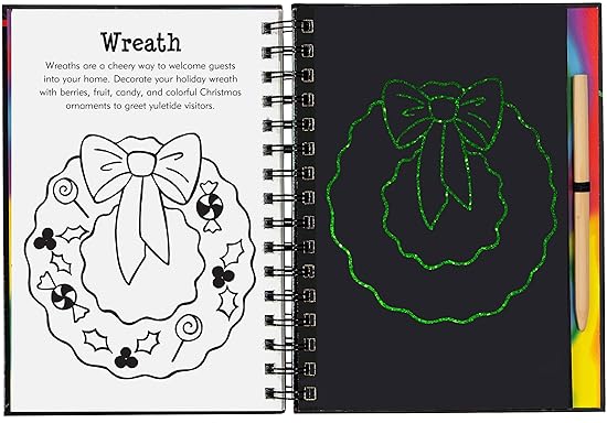 Make some Christmas magic! Scratch away the black coating and reveal Christmas cookies, ornaments, snowflakes, and much more!